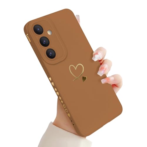 Newseego Case for Samsung Galaxy S25 Plus, Cute Love Heart Pattern Phone Case Flexible Liquid Silicone All-inclusive Lens Design Shockproof Protective Bumper Cover for Samsung Galaxy S25 Plus-Coffee