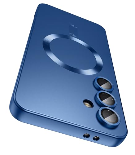 LEKEVO Magnetic for Samsung Galaxy S25 Plus Case [Compatible with MagSafe][Built-in Camera Lens Protector] Slim Soft Silicone Bumper Shockproof Metallic Luster Phone Shell (Blue)