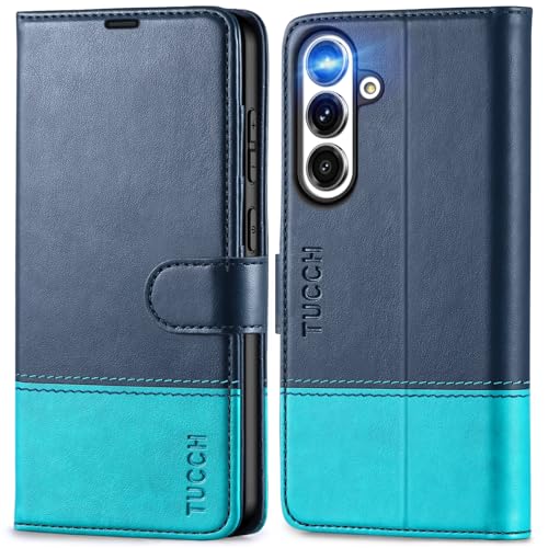 TUCCH Wallet Case for Galaxy S25 Plus (6.7") 2025 5G, Magnetic PU Leather Folding Flip Stand Cover with[RFID Blocking][Card Holders][Shockproof TPU] Compatible with Galaxy S25+ Plus, Blue & Lake Blue