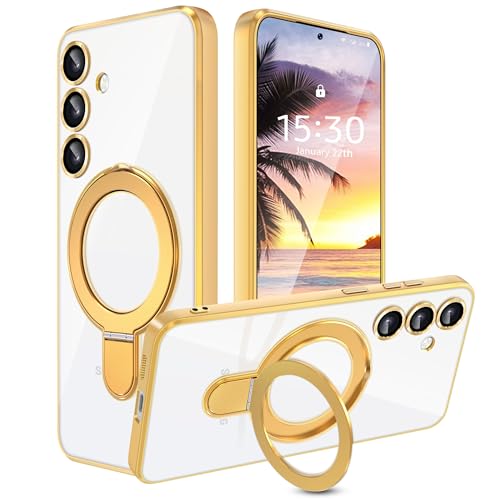 Fingic Magnetic Case for Samsung Galaxy S25 Plus Case[Compatible with Magsafe]Invisible Ring Stand Clear Back Shiny TPU Plating Edge Military Grade Protection Shockproof Cover for S25 Plus,6.7",Clear