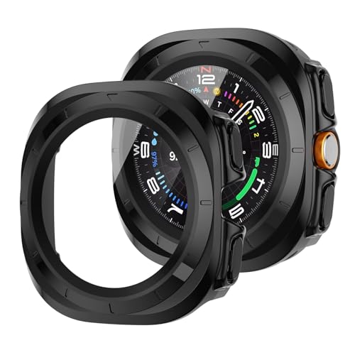 Tuocal 2 Pack Hard PC Case Compatible with Samsung Galaxy Watch Ultra 47mm, Anti-Scratch Anti-Dust Overall Tempered Glass Case for Men Wome Protective Cover for Galaxy Watch Ultra, Black
