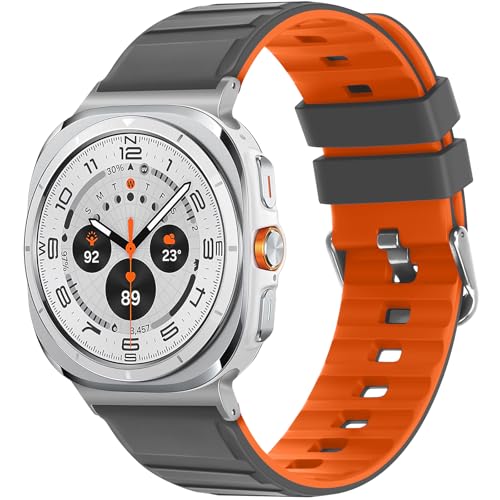 Tasikar No Gap Bands Compatible with Samsung Galaxy Watch Ultra 47mm(2025/2024) Soft Silicone Sport Strap for Galaxy Watch Ultra 47mm(2025/2024) Women Men, Grey Orange
