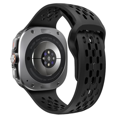 MoKo Sport Strap Compatible with Samsung Galaxy Watch Ultra Strap 47mm (2025/2024) Women Men, Breathable Soft Silicone Waterproof Marine Band Accessories for Samsung Watch 7 Ultra, Black