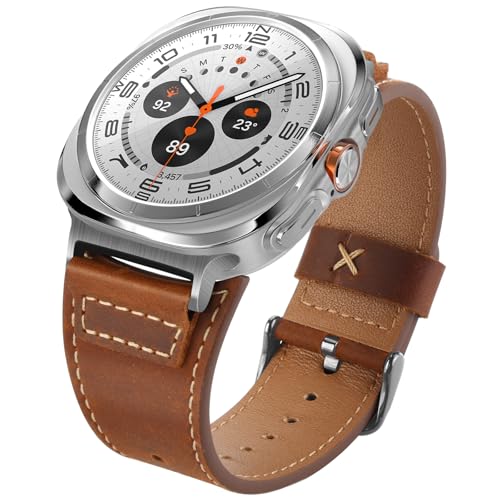 Tasikar Leather Bands Compatible with Samsung Galaxy Watch Ultra 47mm, Genuine Leather Strap Compatible with Samsung Galaxy Watch Ultra 47mm, Classic Brown