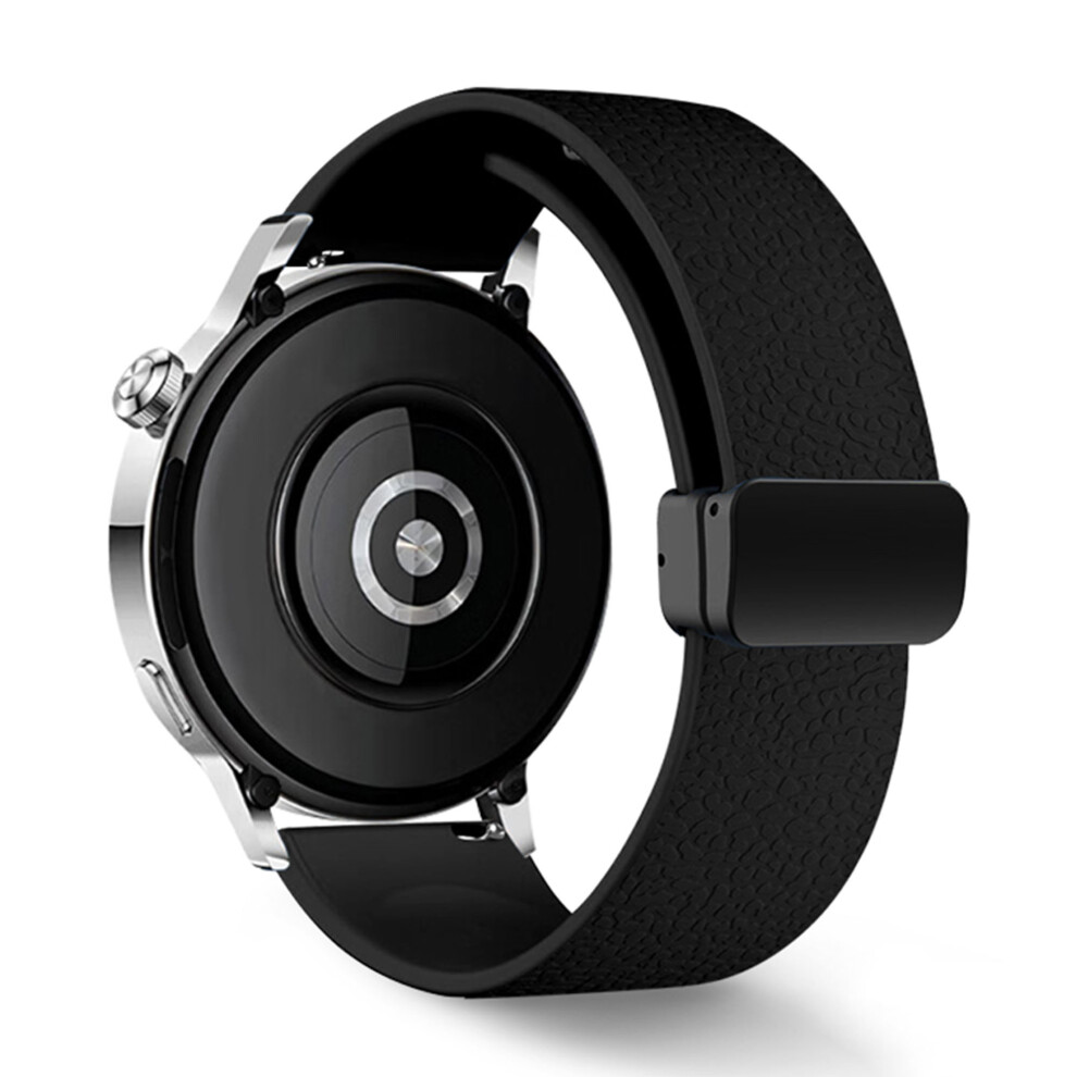 (Black) 20mm Magnetic Silicone Band for Samsung Galaxy Watch7 44mm / 40mm / Watch6 Classic 47mm / 43mm Litchi Texture Folding Buckle Wris