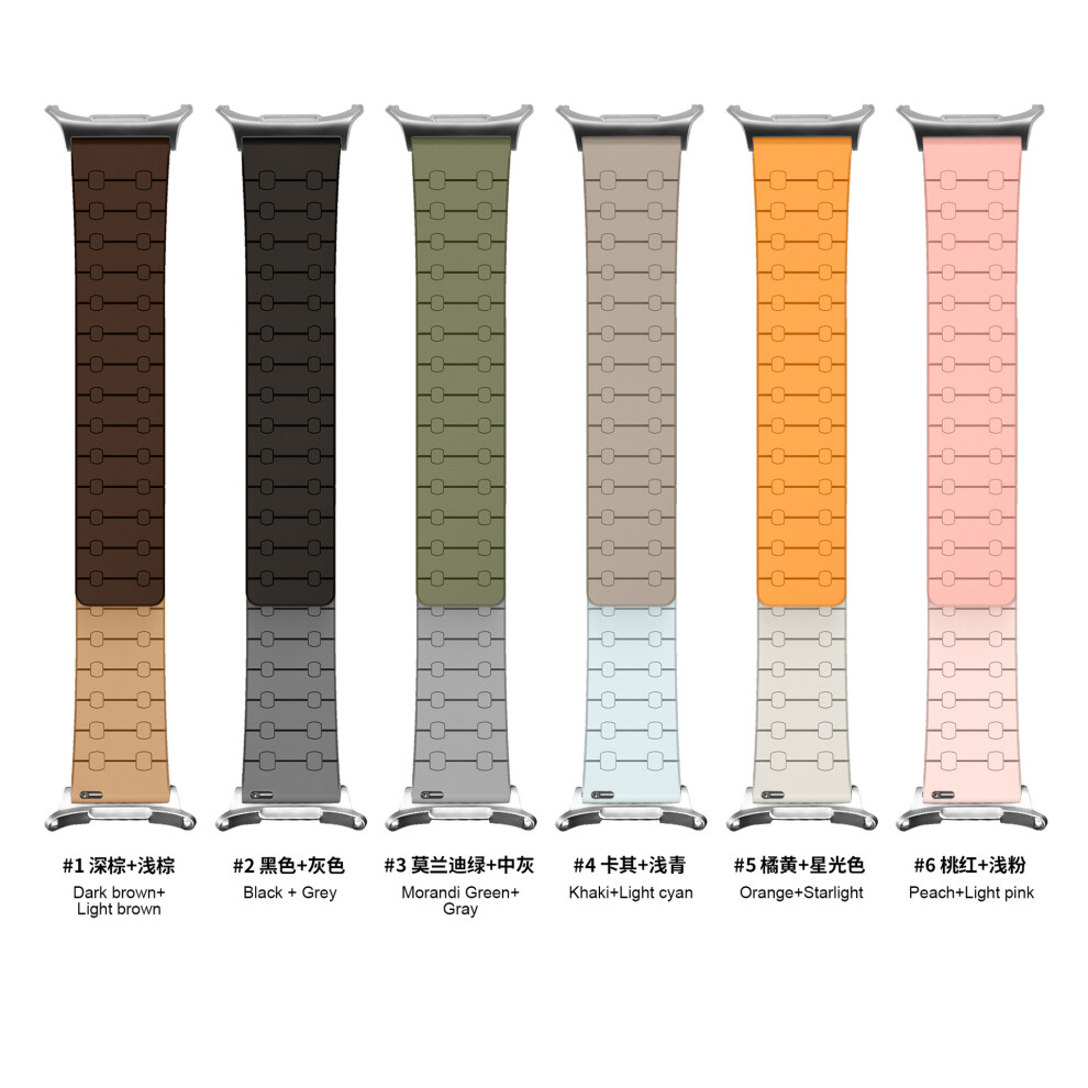(Dark Brown + Light Brown, Samsung 47mm) Magnetic Strap for Galaxy Watch Ultra 47mm, Silicone Watch Band Compatible with Watch7 Ultra