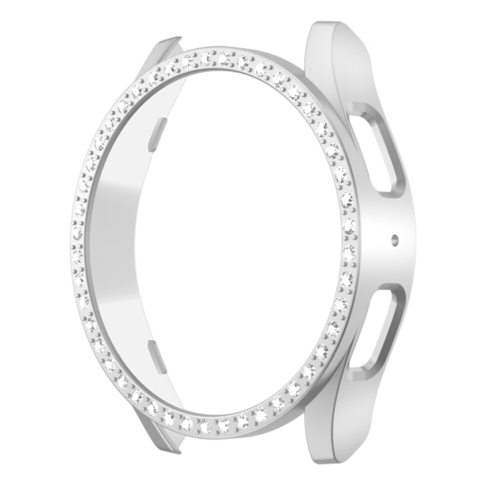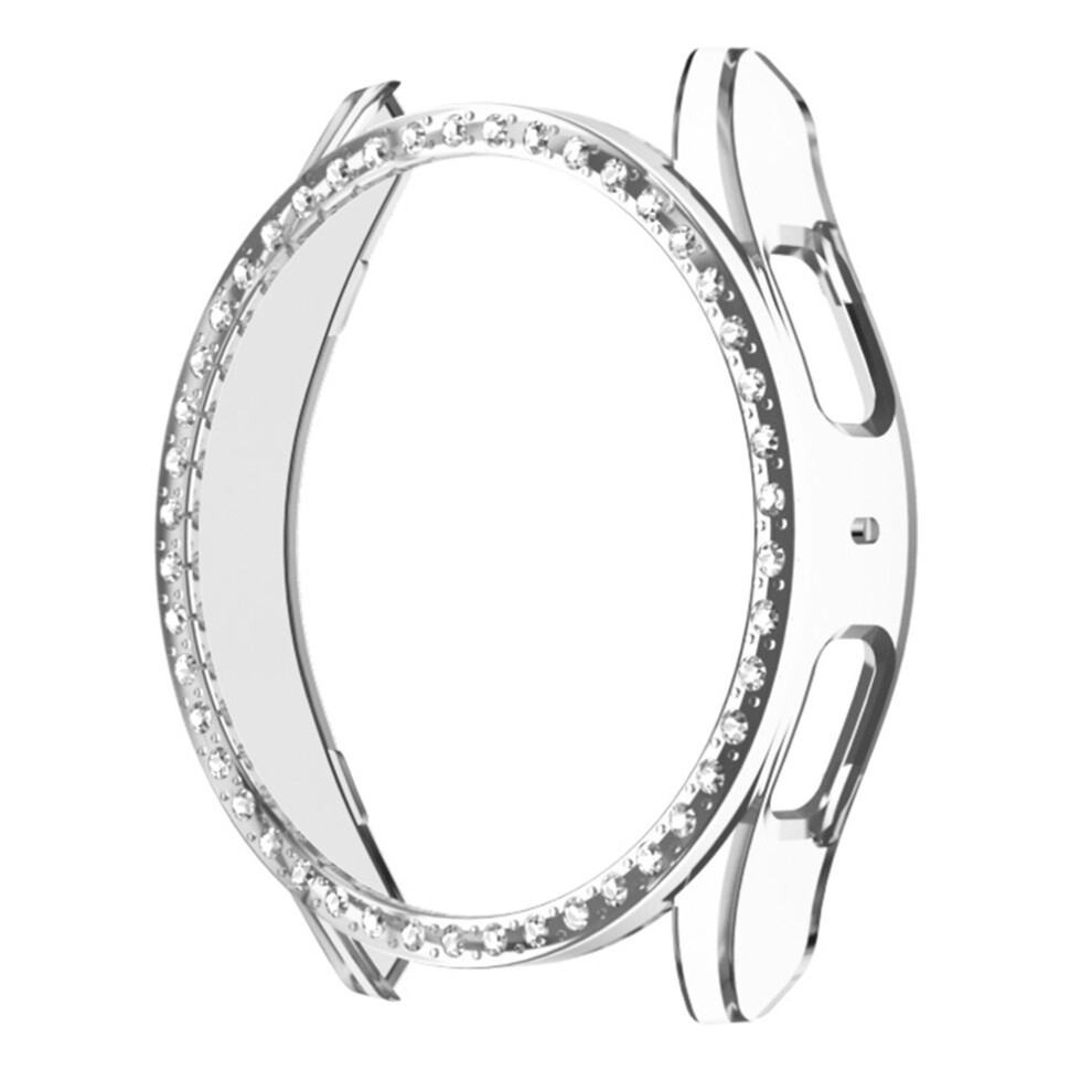 (Silver) For Samsung Galaxy Watch7 40mm Watch Case Rhinestone Decor Hard PC Protective Frame
