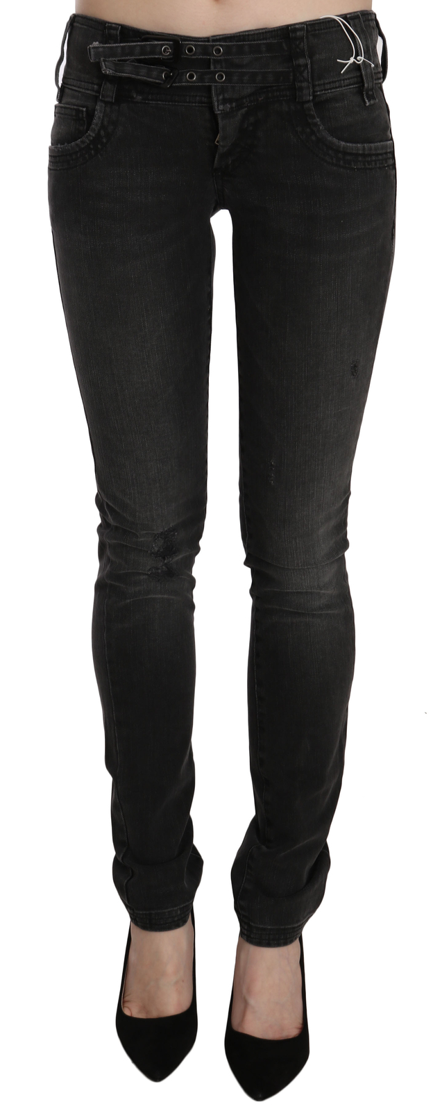 GALLIANO Jeans Black Washed Low Waist Slim Fit Skinny Denim Pants W26