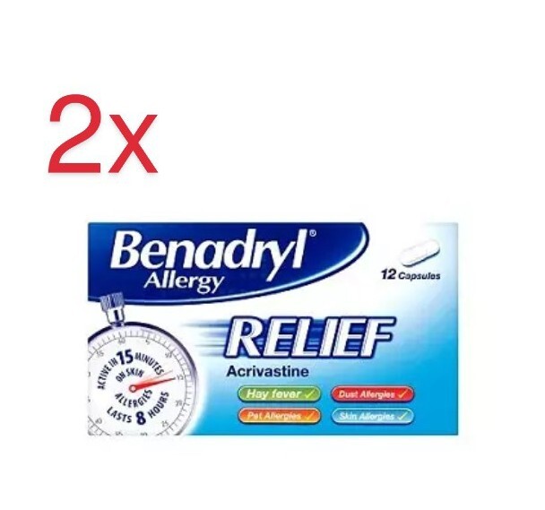 2x Benadryl Allergy Relief For Hayfever, Dust, Pet- 12 capsules