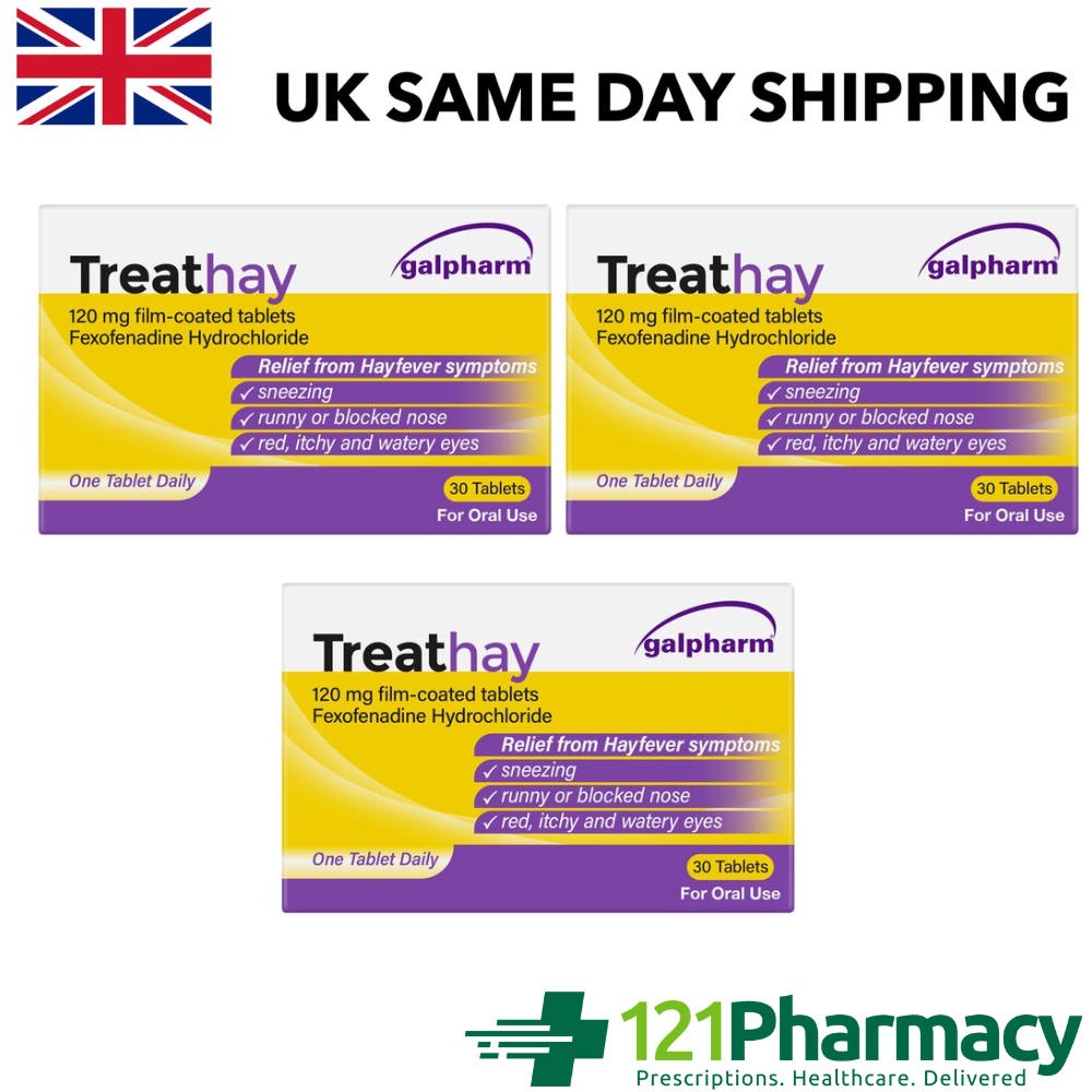 3x Treathay Hayfever Relief | 30 Tablets | Fexofenadine 120mg | ALLERGY