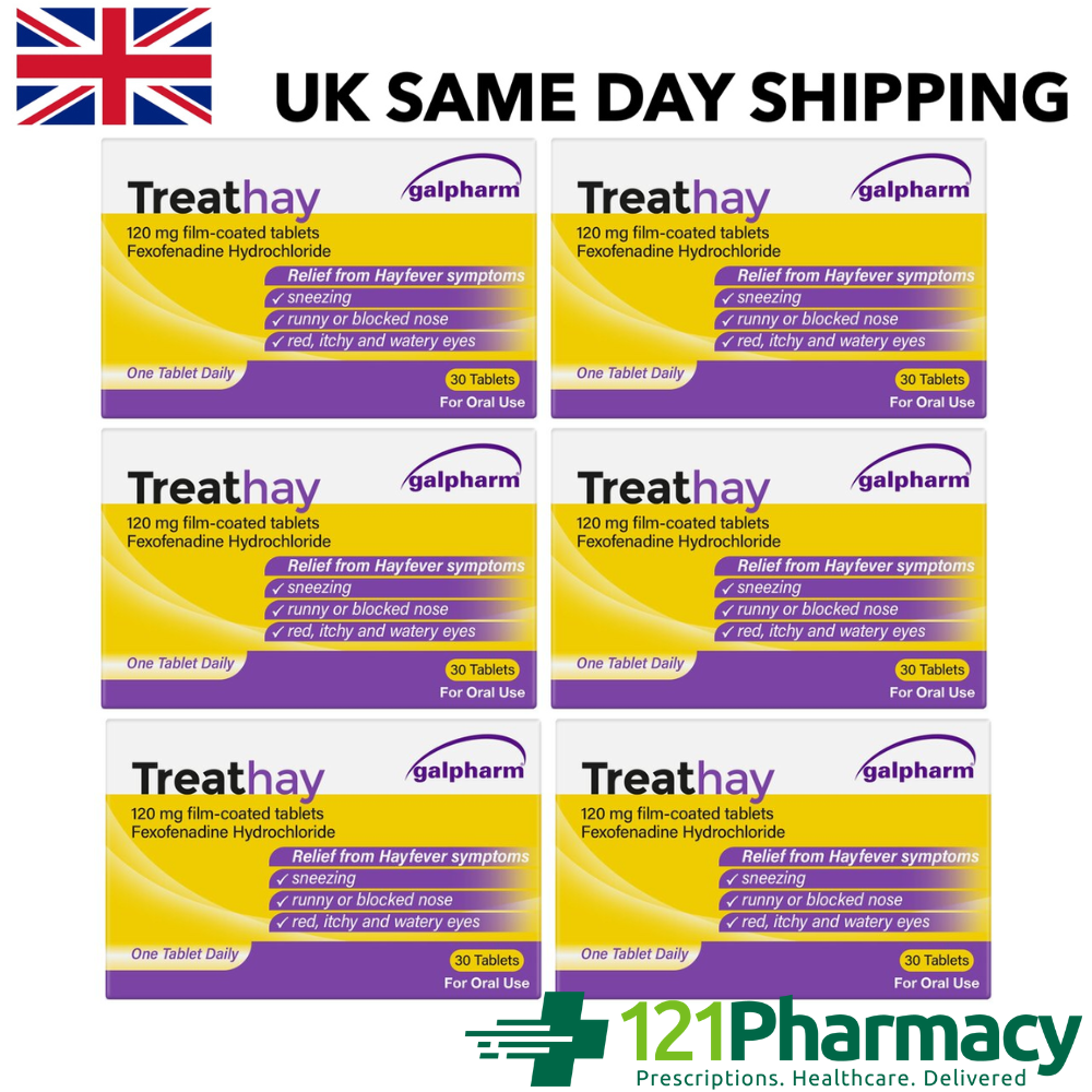 6x Treathay Hayfever Relief | 30 Tablets | Fexofenadine 120mg | ALLERGY