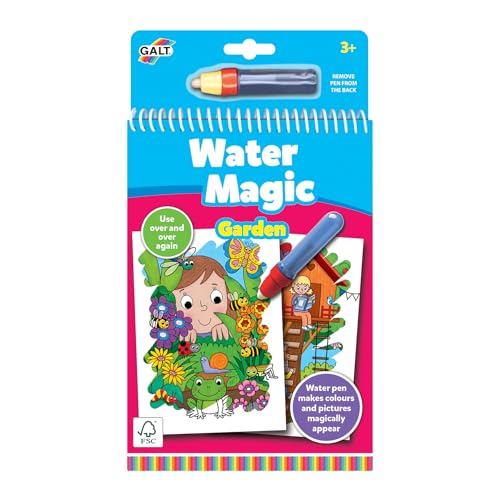 Galt WATER MAGIC Garden Book - Mystical Themed Children's Colouring Books - With Reusable Pictures for Kids to Colour - Magically Reveal Hidden Pictures with Water Pen - Boys & Girls Age 3 +