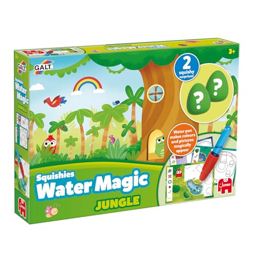 Galt Water Magic Squishies Jungle Reusable Colouring Books for Children, Reusable Pictures for Kids to Colour, Magically Reveal Hidden Pictures with Water Pen & Squishy Surprises, Ages 3 Years Plus