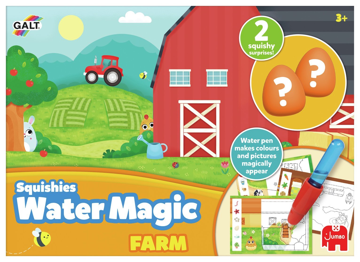 Galt Water Magic Squishies Farm Reusable Colouring Books for Children, Reusable Pictures for Kids to Colour, Magically Reveal Hidden Pictures with Water Pen & Squishy Surprises, Ages 3 Years Plus