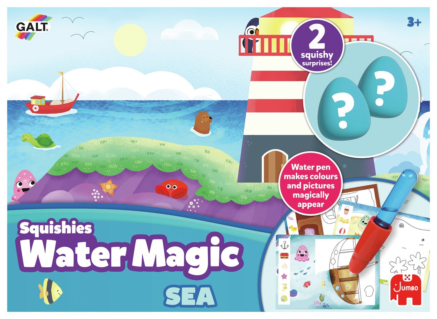 Galt Water Magic Squishies Sea Reusable Colouring Books for Children, Reusable Pictures for Kids to Colour, Magically Reveal Hidden Pictures with Water Pen & Squishy Surprises, Ages 3 Years Plus