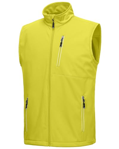 33,000ft Men's Lightweight Softshell Gilet, Windproof Waterproof Outerwear Vest Gilets Sleeveless Jacket for Cycling Running Hiking Golf Travel Lemon Green XL