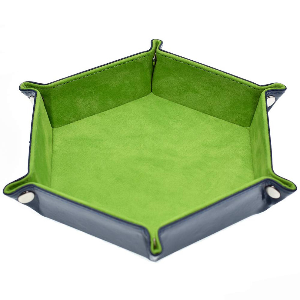 Dice Tray Folding Hexagon Dice Tray Leather and Velvet Dice Holder for DND Dice Game Table Games (Green)