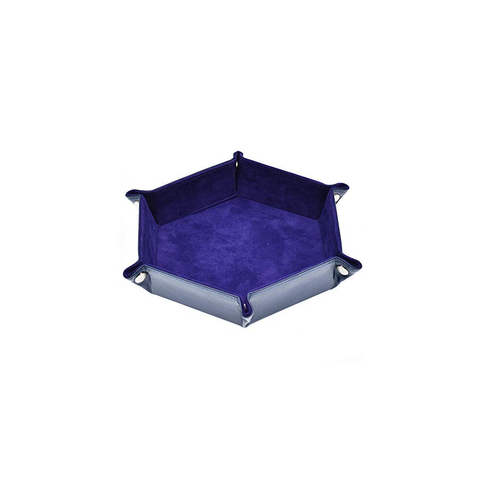 Dice Tray Folding Hexagon Dice Tray Leather and Velvet Dice Holder for DND Dice Game Table Games (Dark Purple)