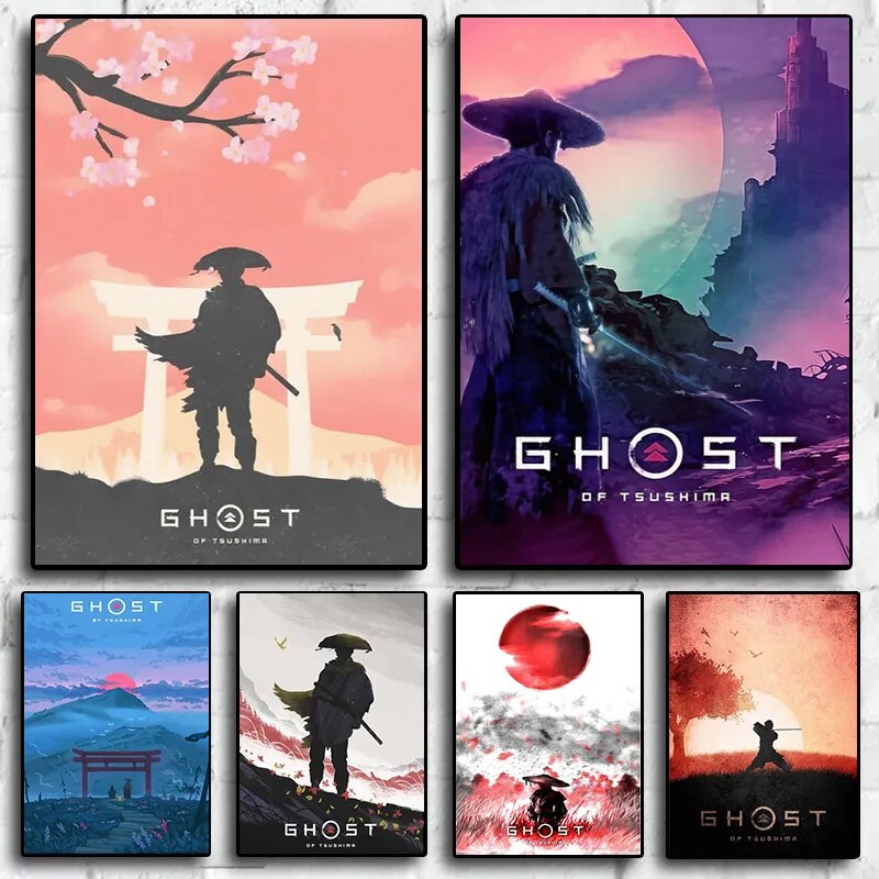 Ghost of Tsushima Video Game Characters Retro Style Artwork, Ideal for Playroom or Living Room, High Quality Canvas Print Poster