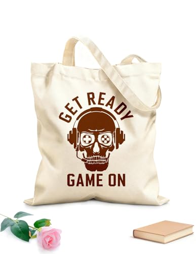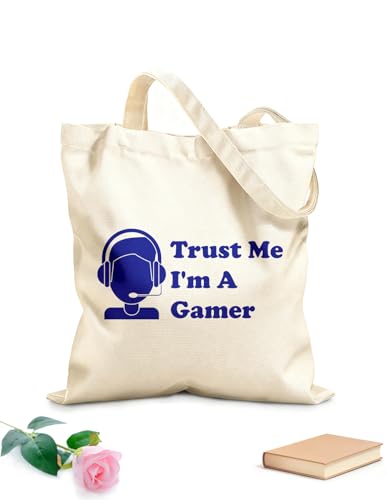 XIARON Canvas Tote Bag game Headphones Computer Games Gaming Room 340g/m² thick fabric Replaces school bag M Black