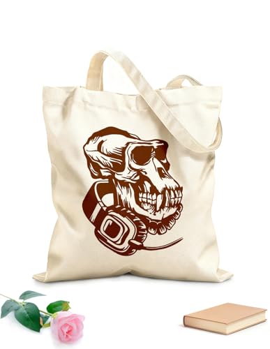 AILOONG Cotton Canvas Shopping Bag Music Skull game Headphones 340g/m² thick fabric Uses as a gift bag