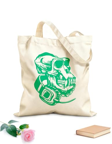 AILOONG Cotton Canvas Shopping Bag Music Skull game Headphones 12 oz thick fabric Uses as a gift bag 31x36cm Medium