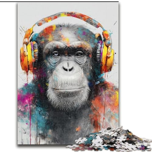 Adult Jigsaws 1000 Piece Chimpanzee Wearing Headphones, Game Toys Every Piece Is Unique - Challenging Family Fun Game for for Age 14 (Size 50x75cm)