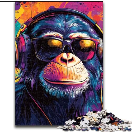 JigsawPuzzle 1000 Pieces for Adults Monkey with Headphones, Game Toys Every Piece Is Unique - Challenging Family Fun Game for for Age 14 (Size 50x75cm)