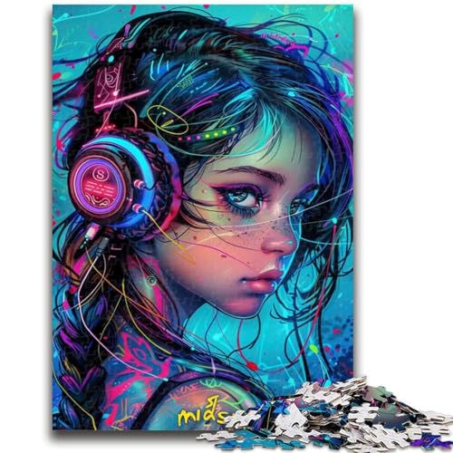 Adult Jigsaws 1000 Piece Girl with Headphones, Game Toys Every Piece Is Unique - Challenging Family Fun Game for for Age 14 26X38CM