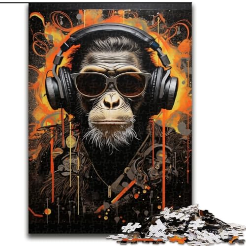 Puzzles for Adults Teens 1000 Pieces Monkey with Headphones, Game Toys Every Piece Is Unique - Challenging Family Fun Game for for Age 14 (Size 50x75cm)