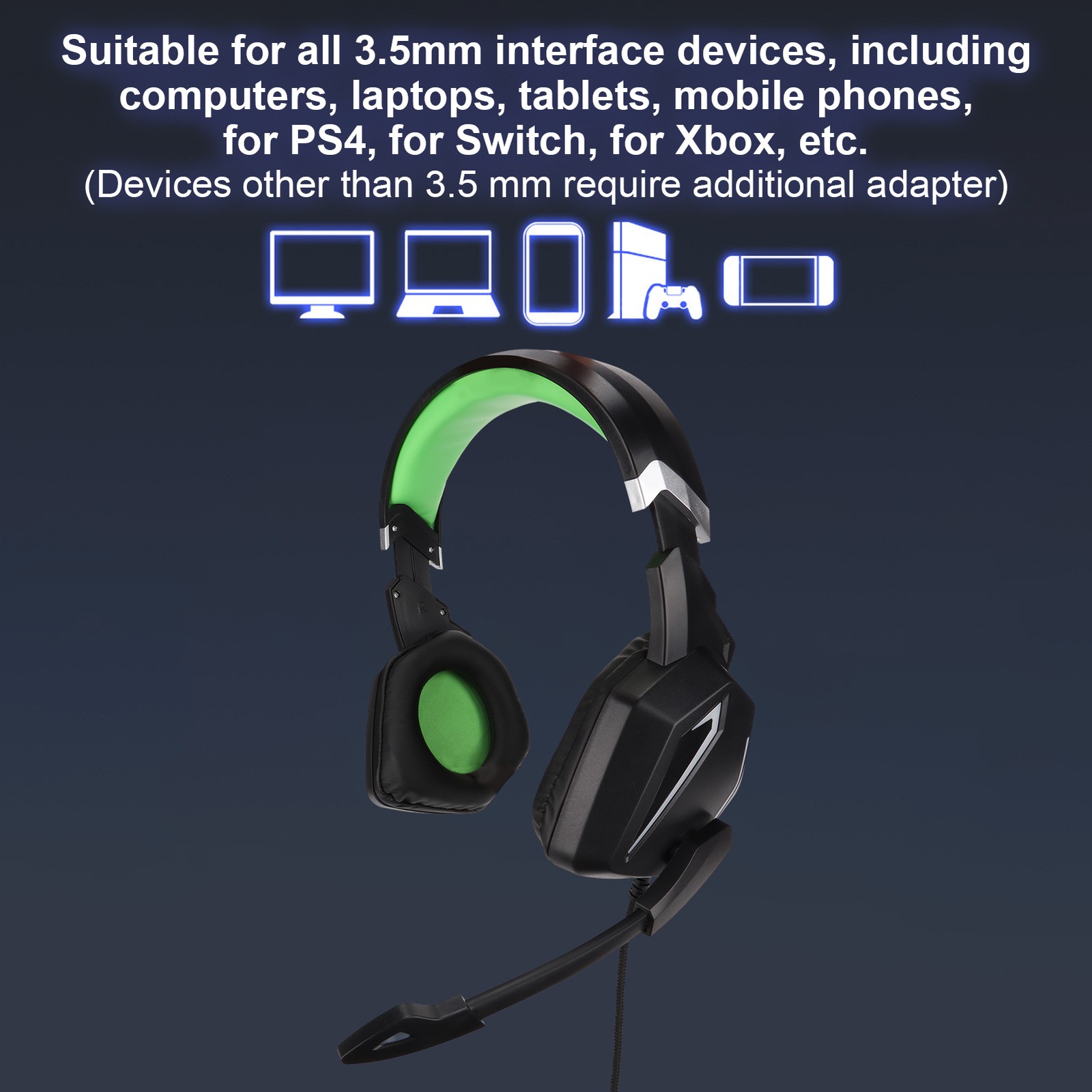 3.5mm Gaming Headset Stereo Game Over Ear Headphones With Volume Control For Set