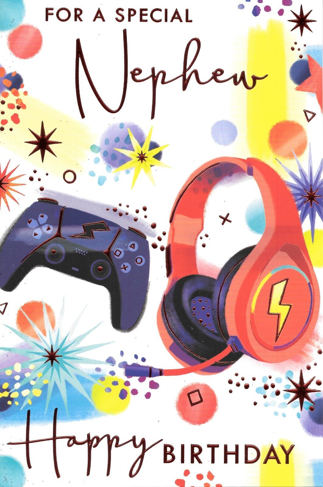 LARGER SIZE BIRTHDAY CARD FOR A SPECIAL NEPHEW - GAME CONTROLLER, HEADPHONES