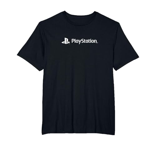 PlayStation Classic White Logo Modern Video Game T-Shirt, Men's Big and Tall, Black, 2X Tall