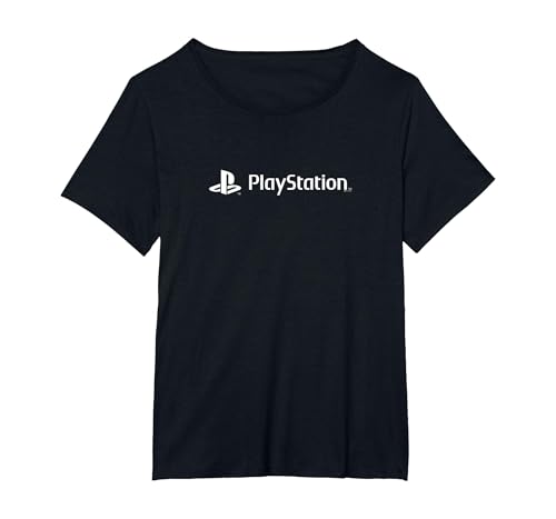 PlayStation Classic White Logo Modern Video Game T-Shirt, Women's Plus, Black, 3X