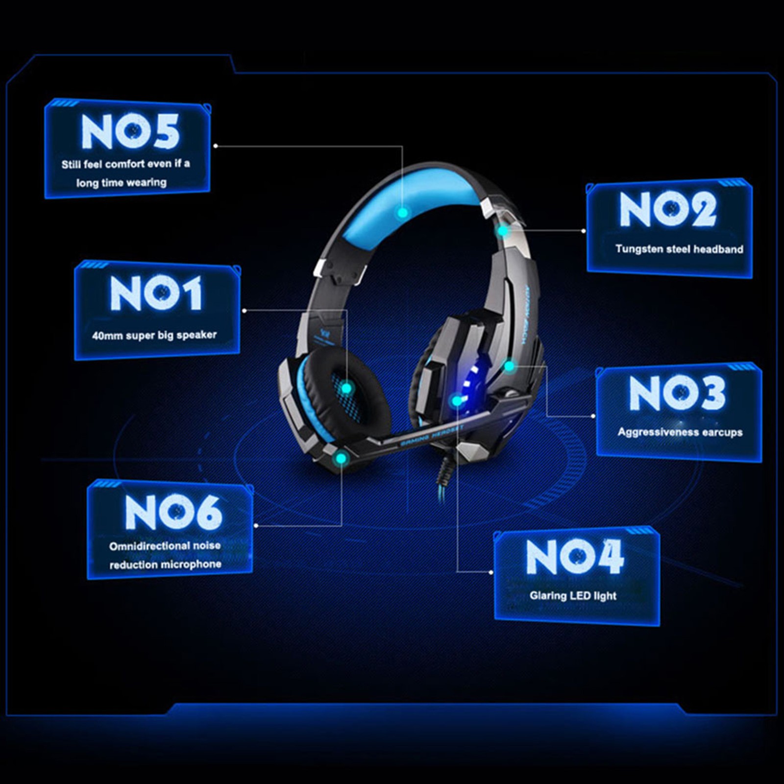 BLACK BLUE G9000 Headset Esports Game Headset With Microphone Laptop Desktop BL