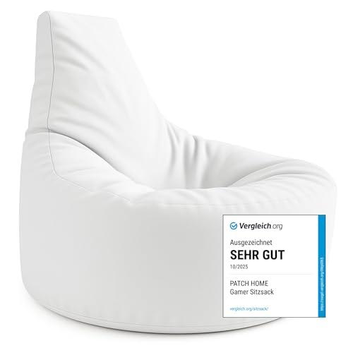 Patchhome Gamer Cushion Lounge Cushion Bean Bag Chair Seat Cushion Suitable for Indoor and Outdoor Use Ready Filled White Diameter 75 cm x Height 80 cm Available in 2 Sizes and 25 Colours