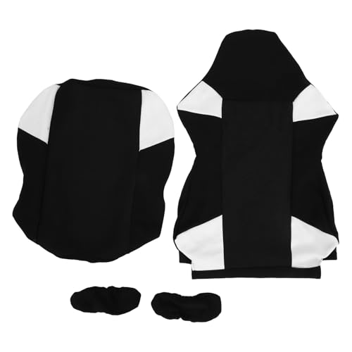 Mikikit Gaming Chair Cover Set with Stretch Mesh Cloth, Scratch Resistant Black and White Short Armrest Protector, Breathable Seat and Backrest Slipcover for PC Gamer Chairs