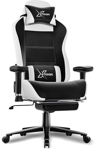 Gaming Chair with Footrest, Gamer Chair for Heavy People, Office Chair with PU Leather for Adults, Computer PC Game Chair 150 kg (Black/White)