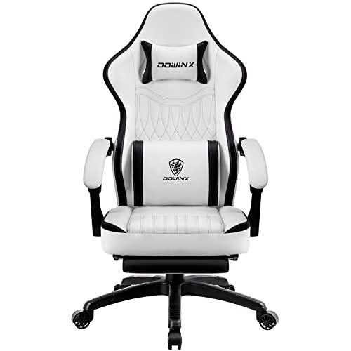 Dowinx Gaming Chair with Footrest, Gaming Chair for Heavy People, Gamer Chairs for Adult with Massage, Computer Chairs with PU for 200lbs (White)