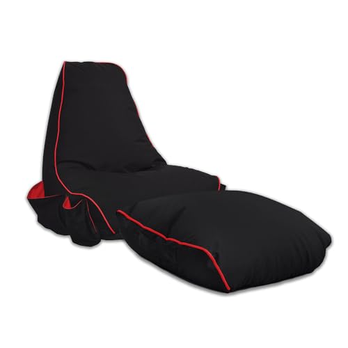 rucomfy Beanbags Black Rugame Gamer Bean Bag Chair with Gaming Pockets. for Teens & Adults. 80 x 97 x 82cm (Red, With Footstool)