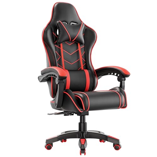 Blisswood Ergonomic Gaming Chair, Office Desk Chair with Lumbar Support, Heavy Duty Swivel Recliner Racing Gamer Chair upto 150Kg Weight Capacity (Red)