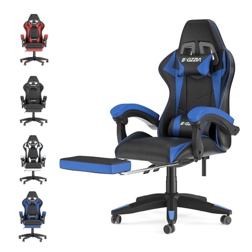 bigzzia Ergonomic Gaming Chair - Gamer Chairs with Lumbar Cushion + Headrest, Height-Adjustable Office & Computer Chair for Adults (with footrest, Blue)