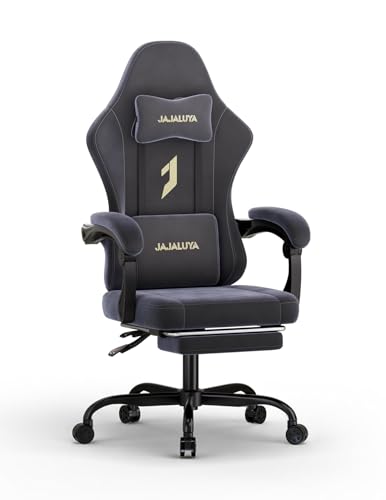 JAJALUYA Gaming Chair Ergonomic Computer Chair with Footrest, Gaming Chairs for Adults, Reclining Pc Gamer Chairs with Headrest and Lumbar Support,Suede material, Max load 350LBS (Black)