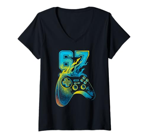 Womens Gamer Controller Gaming Console Six Seven Meme Retro Flame V-Neck T-Shirt