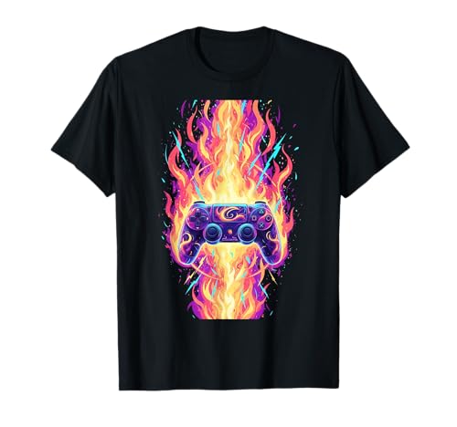 Gamer Controller Gaming Console Six Seven Meme Retro Flame T-Shirt