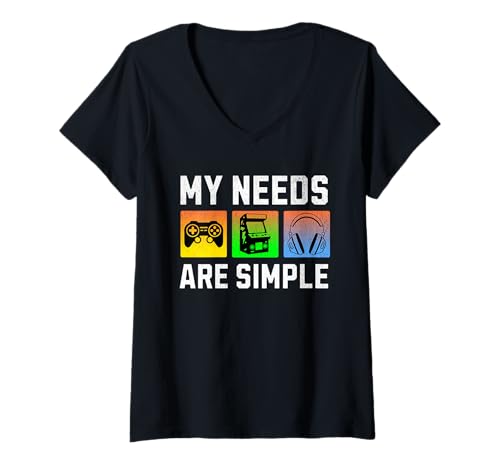 Womens My Needs are Simple Gamer Controller Arcade Headphones V-Neck T-Shirt