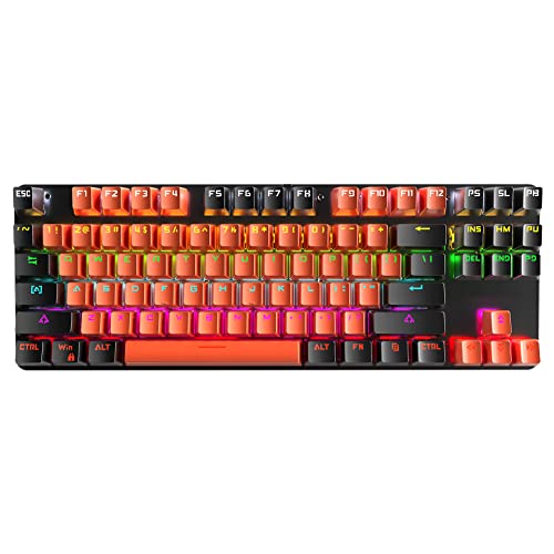 DOKIAUTO ABHI Gaming Keyboards Mechanical with Cool 21 Backlit Effect Hot-swap Wired Keyboard for iOS Android Windows PS4 Xbox 87 Keys PBT Keycaps Compact Computer PC Gamer Keyboard - Orange-Blue