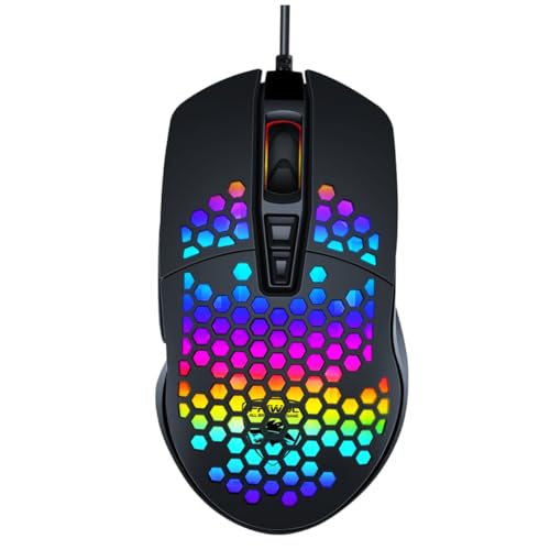 Uonlytech Gaming Mouse Wired Luminescent Honeycomb Design for Pc and Laptop, Black Lightweight Gamer Mouse with Usb Cable for Desktop Use