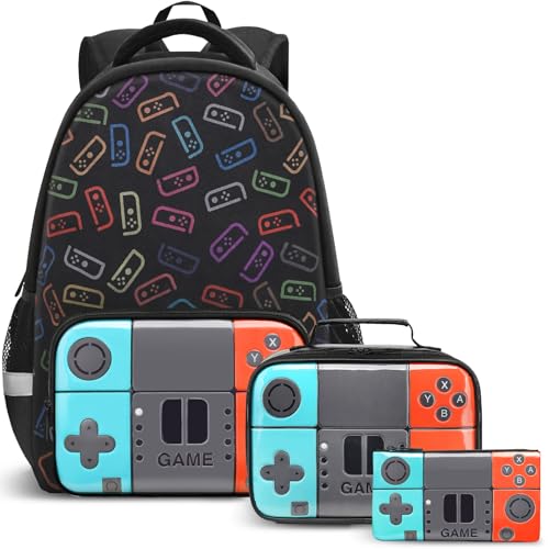 Beaulyn School Backpack For Boys,Gamer School Bag Set For Kids With Lunch Box Pencil Case For Elementary Middle Primary Student,17″ Video Game Rucksack For Laptop