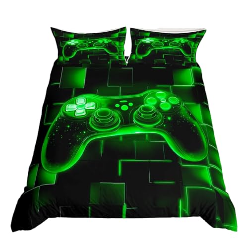 Loussiesd Green and Blue Light Gamepad Duvet Cover Set Single Size For Kids Boys Teens Gamer Bedding Set Gaming Comforter Cover with 1 Pillowcase Came Room Decor